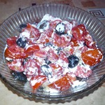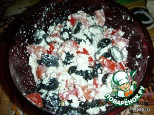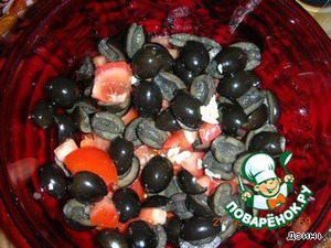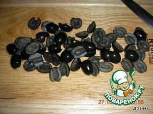 2. Маслины - кружочками, если попадутся мелкие, то просто вдоль пополам