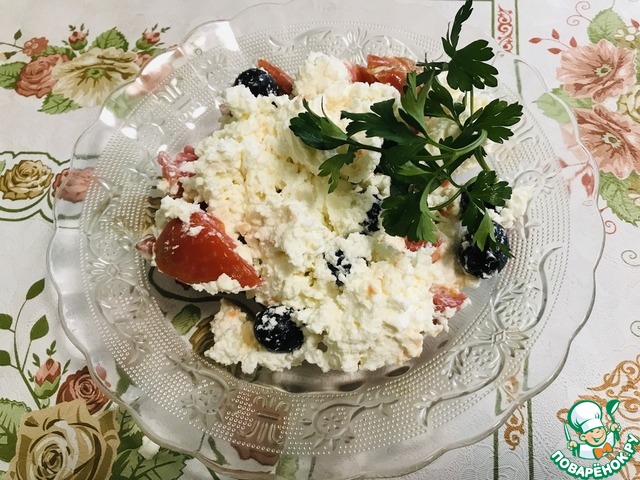 4. Добавляем творог (я обычно покупаю зерненый со сливками)