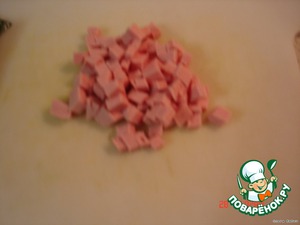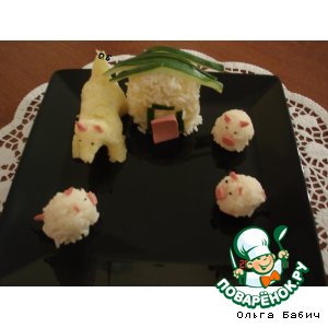 далее лепим поросят: просто слепить шарик, носик и ушки с хвостиком - из ветчины.