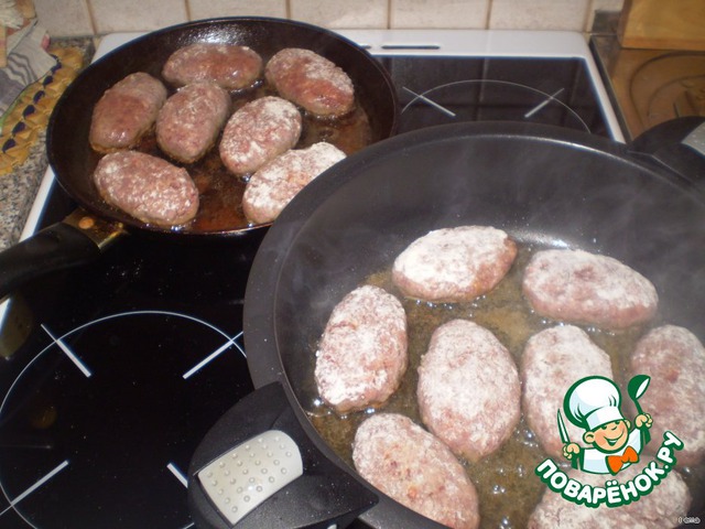 Обжарить в горячем масле до румяной корочки. Я делаю это на двух сковородках, чтобы масло не остывало сильно. Когда котлеты подрумянятся с одной стороны ,перекладываю всё в одну сковородку и убавив огонь дожариваю. Так они и подрумянятся и прожарятся.