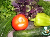 - нарезать овощи: помидоры, огурцы, болгарский перец, зелень (веточки), |