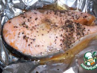 - стейк семги посолить, поперчить, |