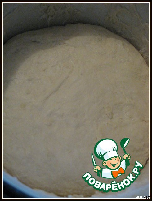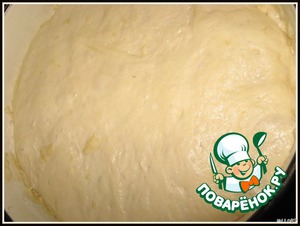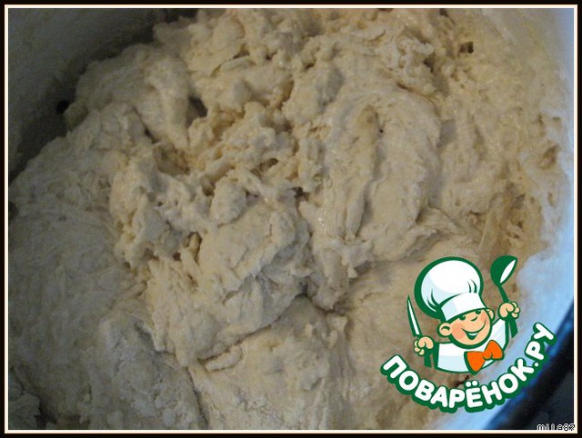 Постепенно добавляя понемногу муки, замешиваем очень некрутое... а скорей даже липкое тесто...