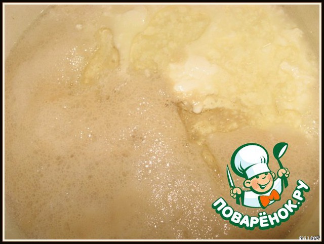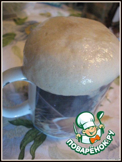 Смешиваем воду, дрожжи и сахар, ставим в теплое место, даем хорошо подняться шапкой. -