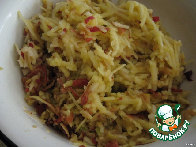 Яблоки натереть на крупной терке.