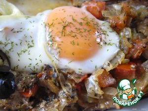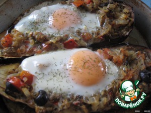 Ингредиенты для «Баклажанная глазунья с оливками»: