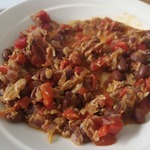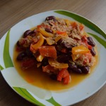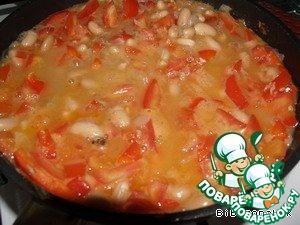 Положить овощи и фасоль консервированную тушиться к тунцу. Посолить и поперчить.
