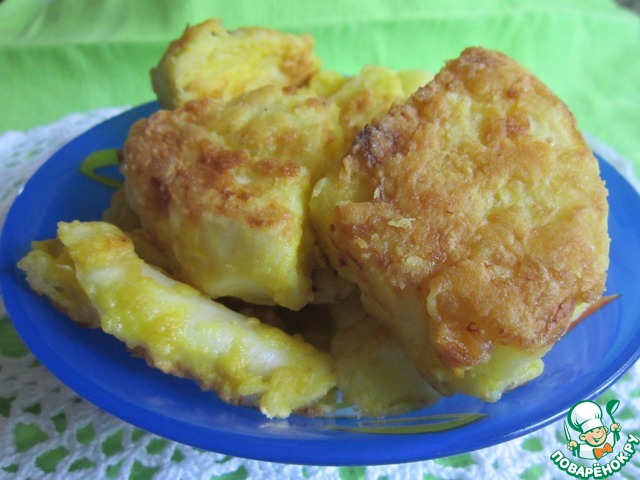 Хорошая и вкусная вещь!Я именно так не делала, попробую.А вот когда неформатные листики остаются во время приготовления голубцов, то я их тоже в кляр, обжариваем, и чесночком давленым присыпаем....Обожаю)