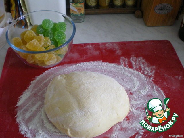 Укладываем на неё мармеладинку и защипываем края, придавая форму шара.