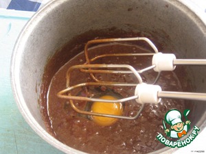 Добавить по одному яйца и после каждого хорошо взбивать миксером
