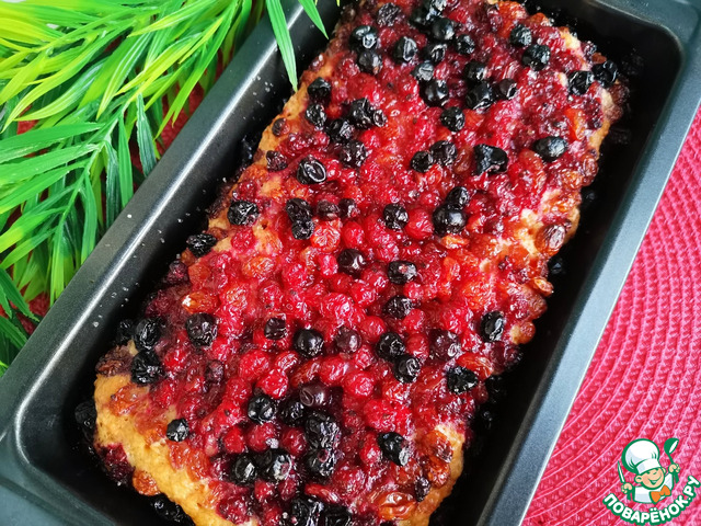 Выложить тесто. Сверху разложить изюм, чёрную и красную смородину.