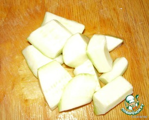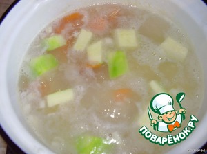 Кабачок моем, очищаем от кожицы, если он не очень молодой, то можно удалить и семена, и режем на кусочки, кладем в супчик