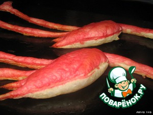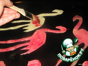 Смазать их свекольным соком (я просто натёрла варёную свеклу и отжала её), при помощи кисточки.