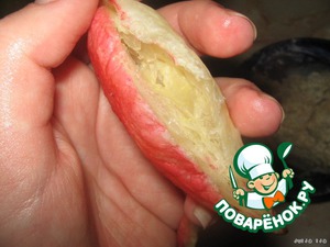 Пока слойки пекутся, приготовить начинку. Она, кстати хороша не только в слойках, её можно просто намазывать на хлеб.