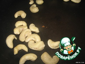Кешью обжариваем на сухой сковороде (можно взять уже обжаренные).