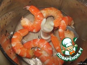 Итак... Креветки размораживаем, очищаем, кладём в блендер. -