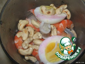 Яйцо отвариваем вкрутую, кладём в блендер яйцо и кешью.