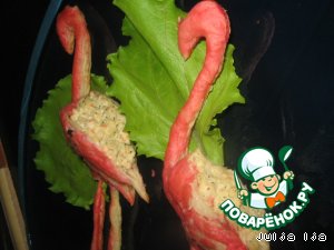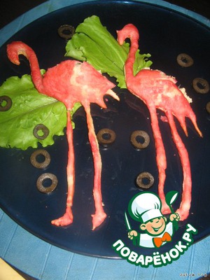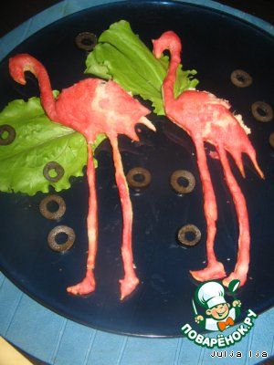 Выкладываем на блюдо, украшаем и подаём на стол. Третий фламинго у меня "потерялся", с ним Мишаня поиграл :-D
