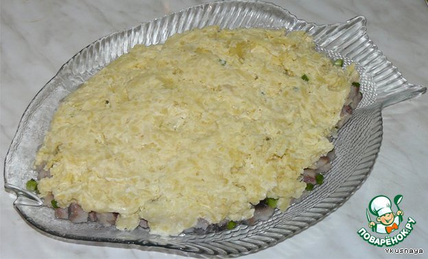 Яйца натереть на терке. Это последний слой.