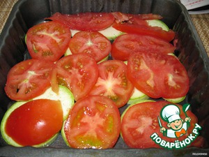 Теперь кладем нарезанные кружочками помидорки. Тоже солим