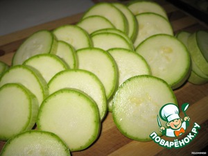 Режем кабачок колечками толщиной примерно в 0,5 см