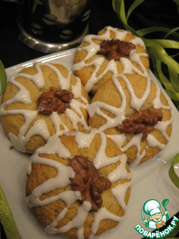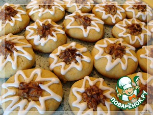 Рассыпчатое нежное печенье с орехом и очень нарядное.