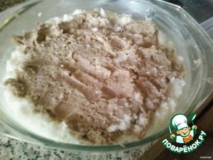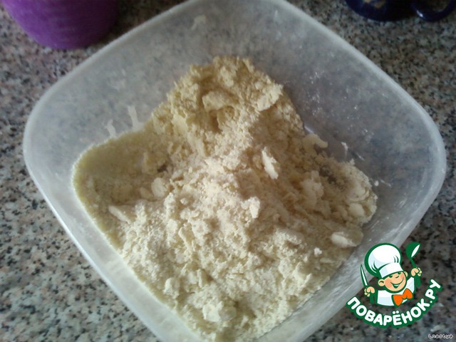 Муку перетираем со 100 гр маргарина и 50 гр сахара.