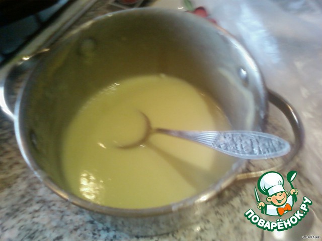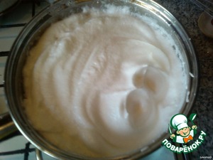 Начинка: 6 белков взбить на паровой бане с 1 стак сахара.