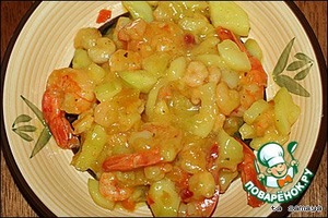 Рецепт «Креветки с цуккини в кисло-сладком ананасовом соусе»: