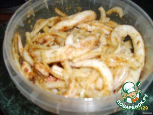 Ещё на закусон имелись такие вот кальмарики с луком по-корейски (делается за 5 минут)...