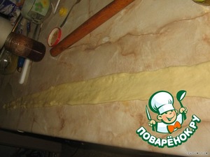 Из теста делаем жгут, растягиваем его, как можно длиннее (но не длиннее 38-ми попугаев :-D ). Раскатываем по всей длине.