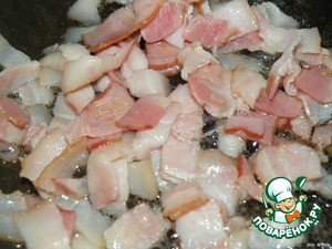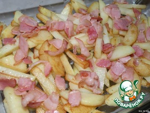 Бекон нарезать и обжарить в том же масле, в котором готовился картофель.