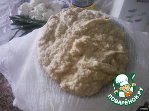 Готовим начинку: в творог добавить яйцо, зеленый лук,
