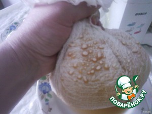 Затем массу откинуть на марлю и отжать жидкость (крахмал)