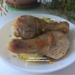 Запекаем курочку при температуре 200 градусов минут 30-40 (если вода выпаривается, подливайте понемногу еще).