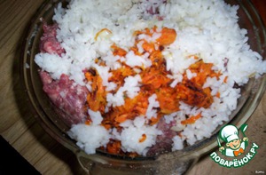 - приготовить фарш: мясной фарш+морковь+мелко нарезанный лук+рис+соль+перец