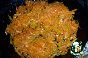 - поджарить тертую на крупной терке морковь,