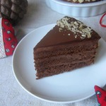 [+5]Бисквит испекла один большой из 3-х яиц и разрезала его на 3 части, сироп для пропитки делала 2 нормы (люблю мокрые торты), крем - 100 гр шоколада 75% растворила в 200 мл сливок, 200 мл. взбила, сварила порцию заварного крема (100-120 мл) и смешала его с шоколадным ганашем, потом подмешала взбитые сливки. Форма диаметром 18 см, высота 6*7 см. Покрытие - шоколадный ганаш с Бейлисом и фундук.