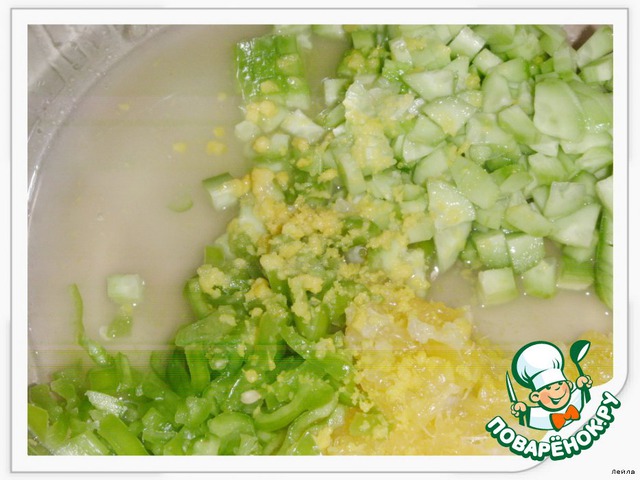 • Нарезать мелкими кубиками перец