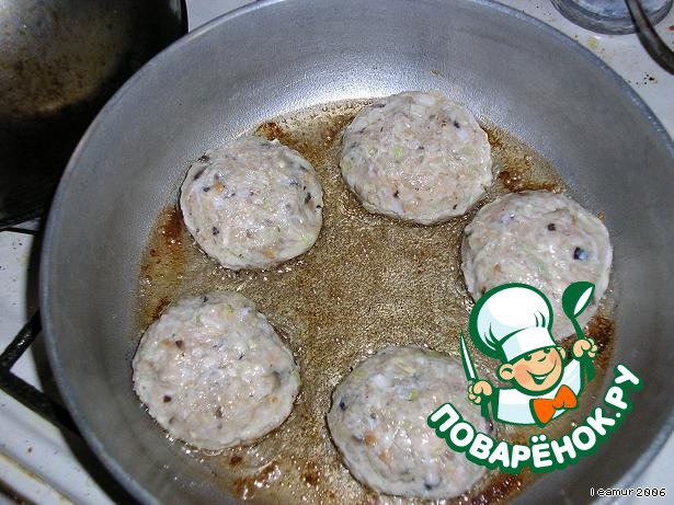 Сформировать котлетки. Обжарить с 2-х сторон на сковороде.
