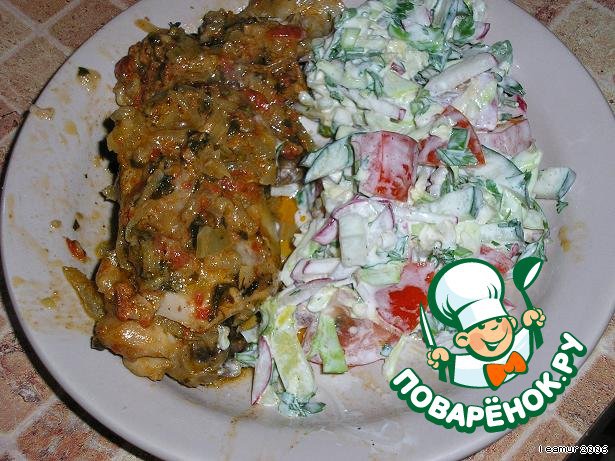 Вобщем, в этот раз мешала я как-то все, мешала-перемешивала... и вот что-то получилось... муж сказал, что похоже на "чахохбили" (извините, если неправильно написала).