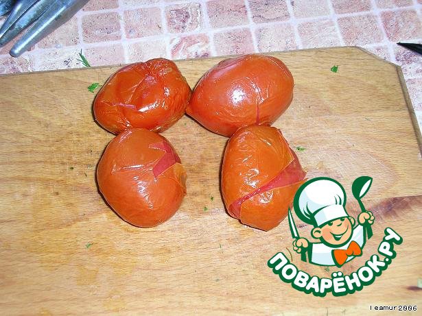 Помидоры очистить от кожицы и мелко порубить ножом (сок можно и не использовать, если не хотите слишком жидкий соус)