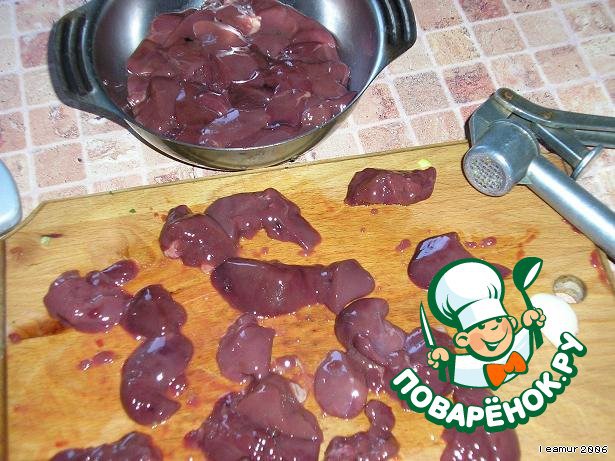 • Нарезать печенку. Я сделала некрупно, даже, можно сказать, мелко.