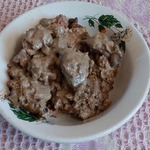 Посмотрела на фото, цвет не очень. Где же вино, а его всего 1 ложка. Вот если бы грамм 100-150, то был бы красивый цвет, как в рецепте "Петух в вине". А вообще это очень вкусно.
