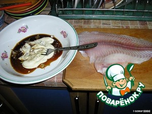 Смешать заправку с рыбой и дать некоторое время постоять - замариноваться.