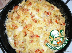 Выложить в сковороду. Я ее не смазывала, т. к. рыба у меня была морской язык, а она достаточно жирная.