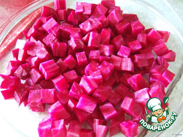 Свеклу нарезать на маленькие кубики.