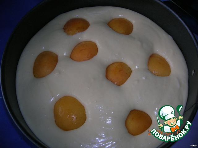 Сверху выкладываем половинки абрикосов. Пусть они символизируют солнышко, которое всегда светит нашим деткам. Ставим в разогретую до 200 градусов на 40 минут.