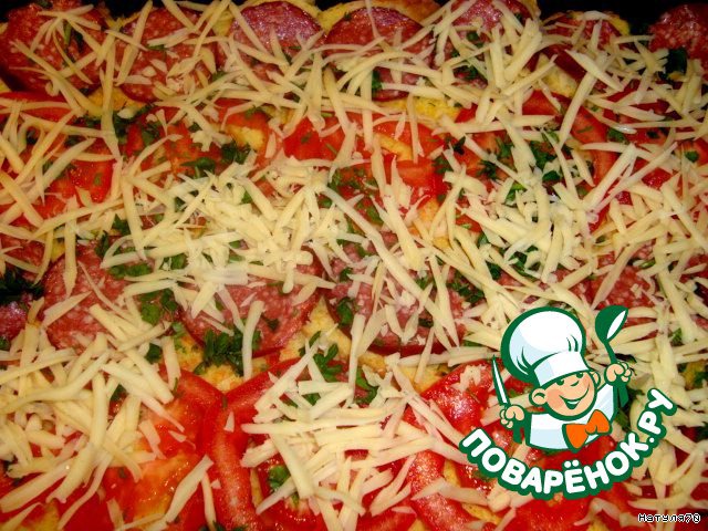 Посыпать зеленью и тертым сыром. Отправить в разогретую духовку минут на 10.