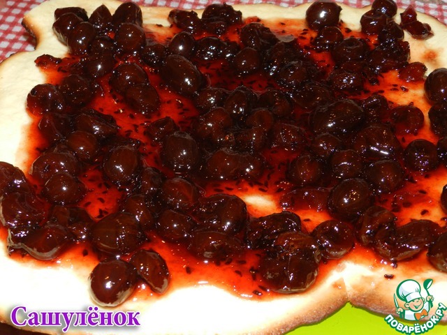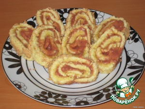 Через указанное время достаем, быстро мажем джемом или вареньем и заворачиваем, пока горячий.